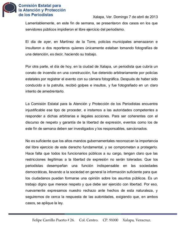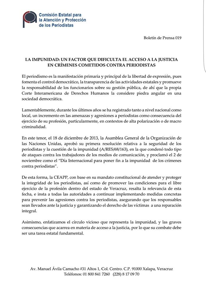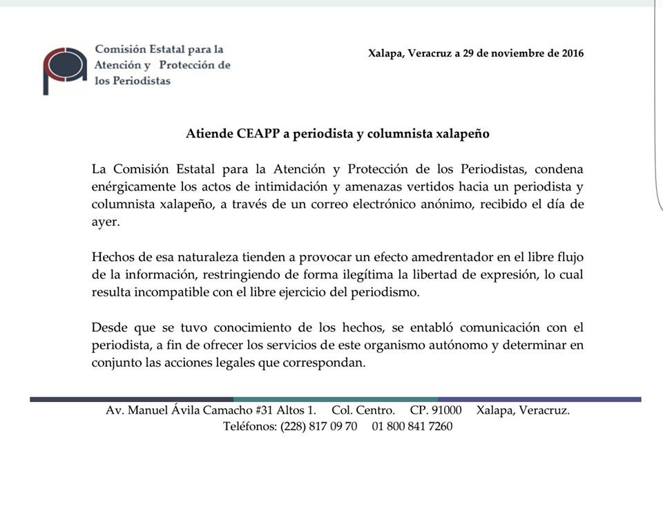 CEAPP brinda acompañamiento a periodista de Soledad de Doblado y rechaza actos de intimidación