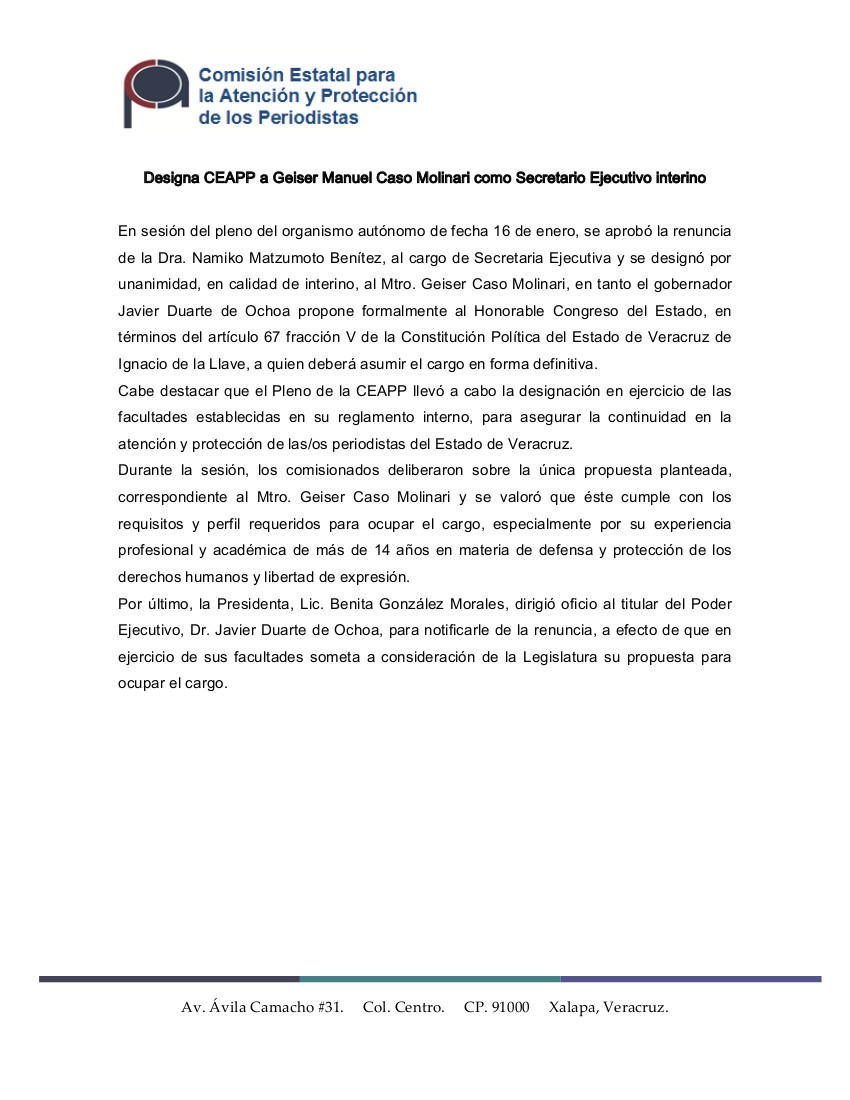 Designa CEAPP a Geiser Manuel Caso Molinari como Secretario Ejecutivo interino