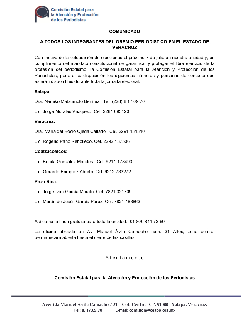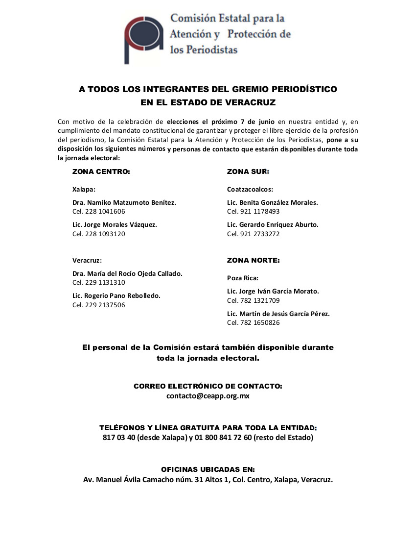 A TODOS LOS INTEGRANTES DEL GREMIO PERIODISTICO EN EL ESTADO DE VERACRUZ