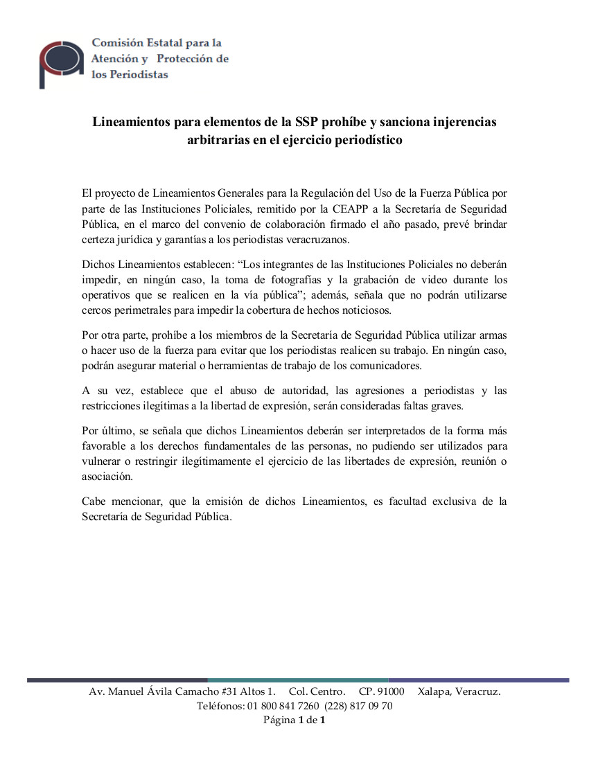 Lineamientos para elementos de la SSP prohíbe y sanciona injerencias arbitrarias en el ejercicio periodístico