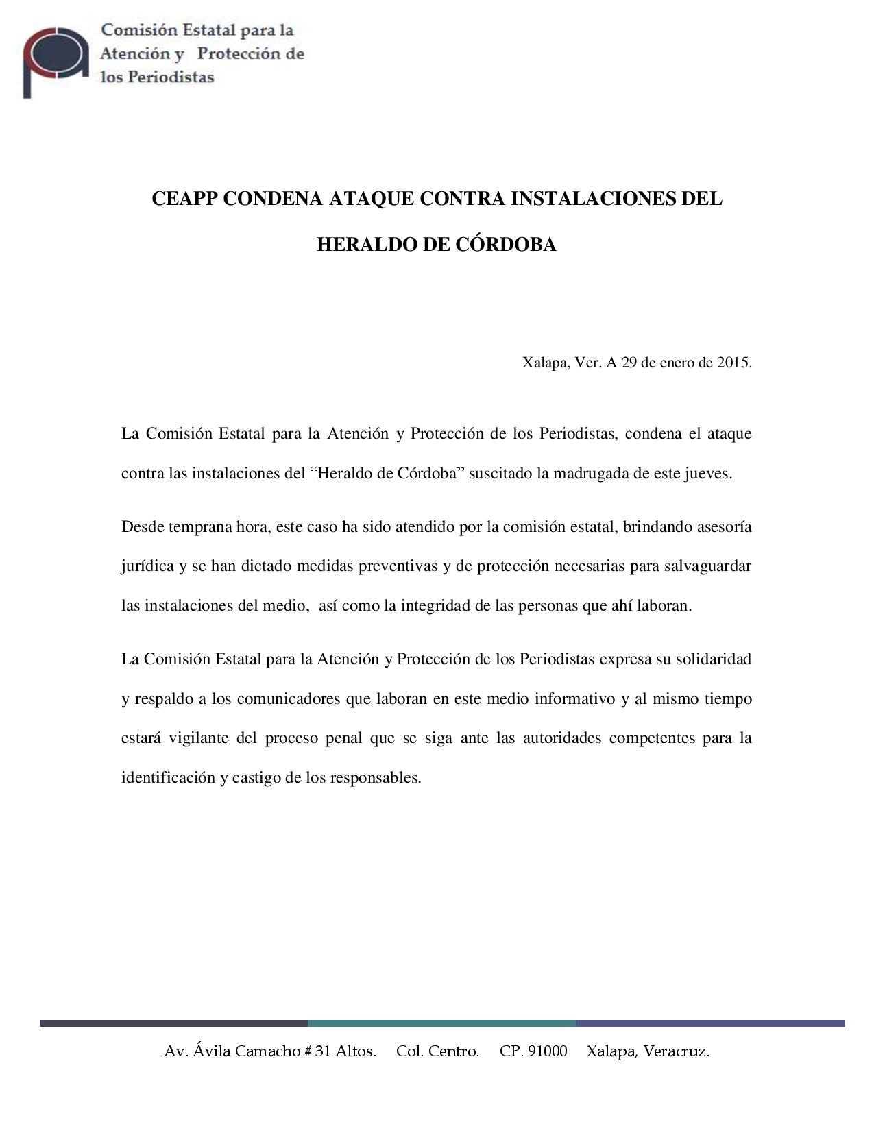 CEAPP CONDENA ATAQUE CONTRA INSTALACIONES DEL HERALDO DE CÓRDOBA