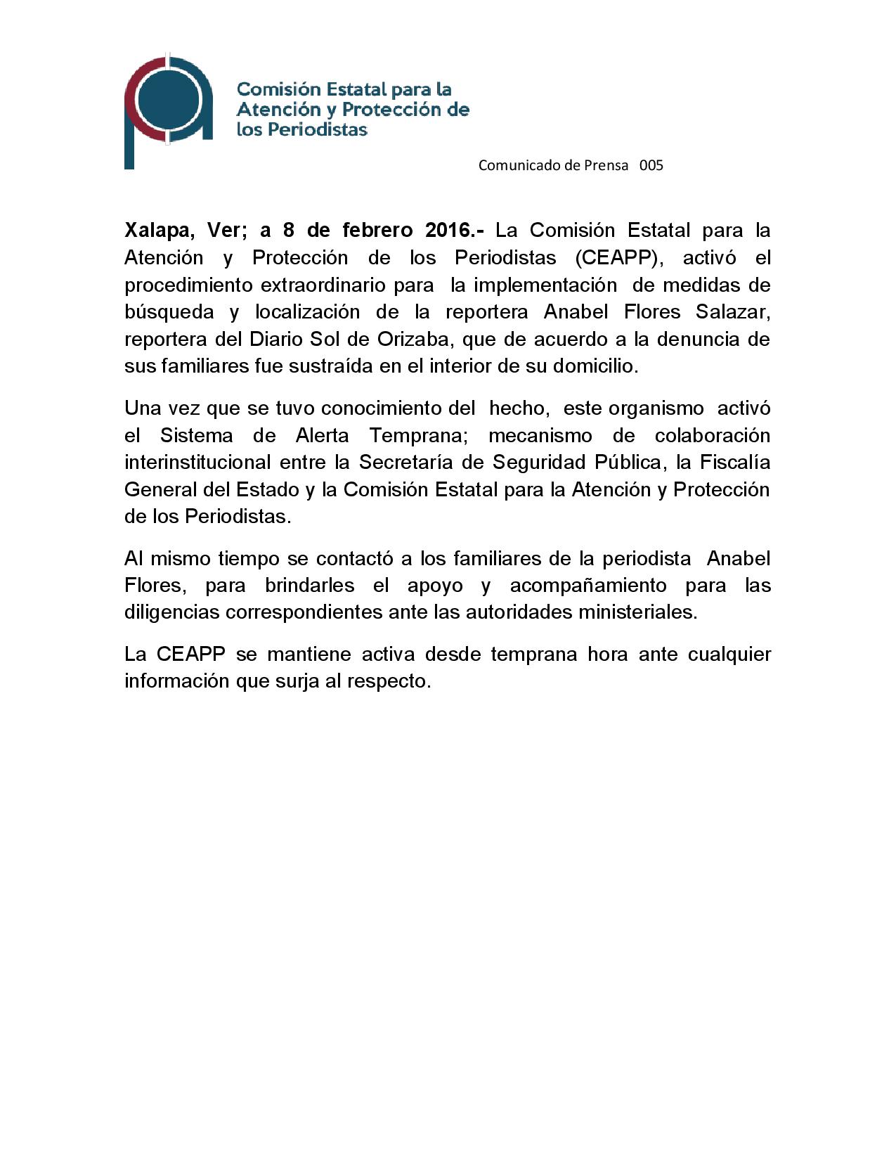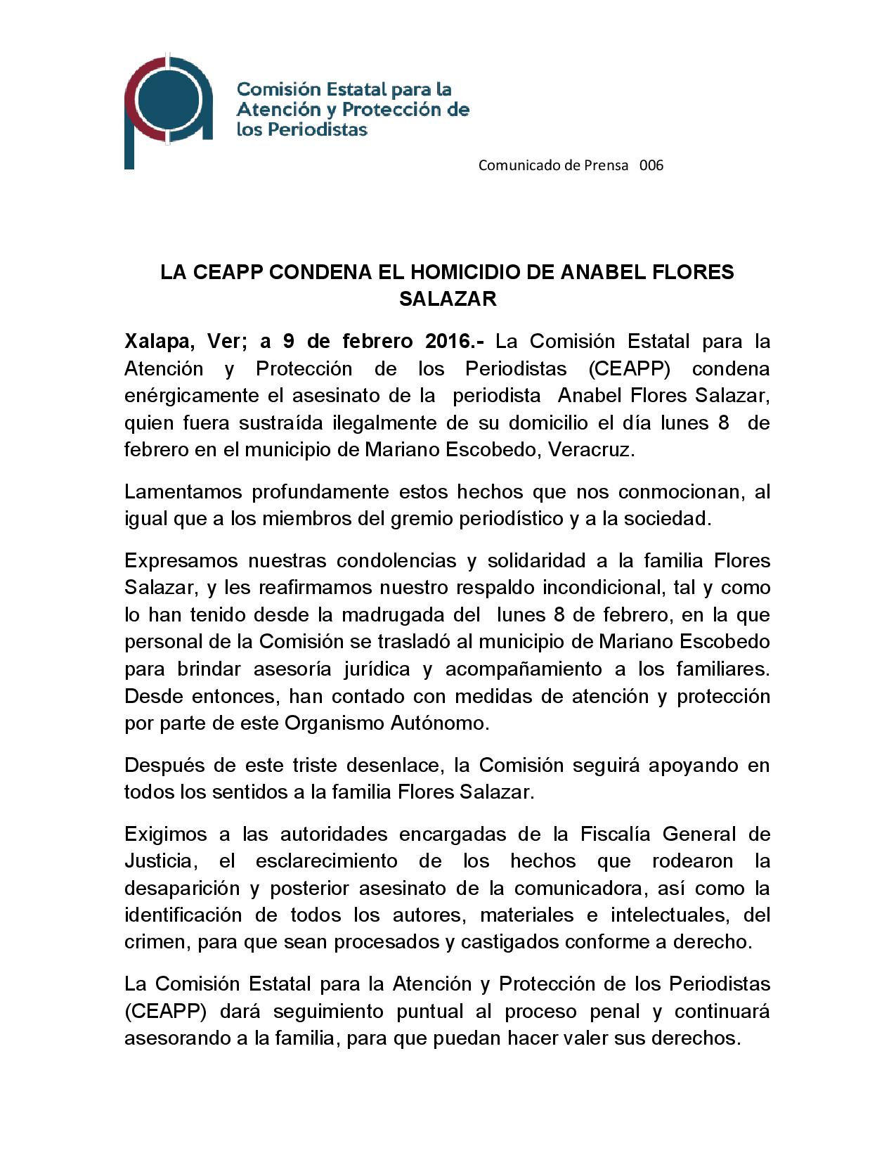 LA CEAPP CONDENA EL HOMICIDIO DE ANABEL FLORES SALAZAR