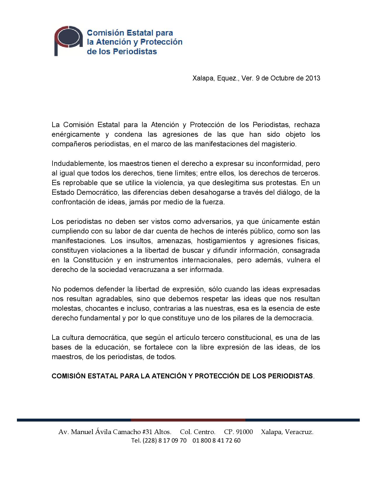 CEAPP rechaza cualquier agresión en contra de periodistas