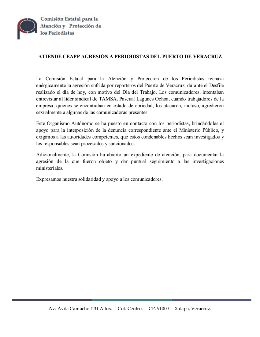 ATIENDE CEAPP AGRESIÓN A PERIODISTAS DEL PUERTO DE VERACRUZ