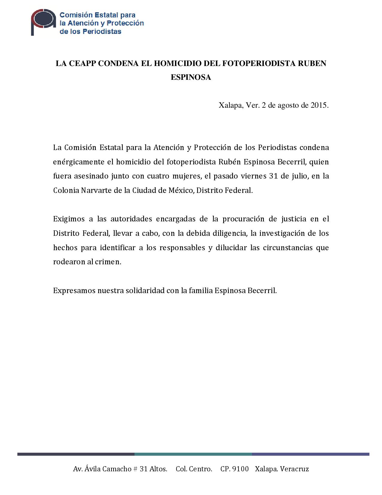LA CEAPP CONDENA EL HOMICIDIO DEL FOTOPERIODISTA RUBEN ESPINOSA