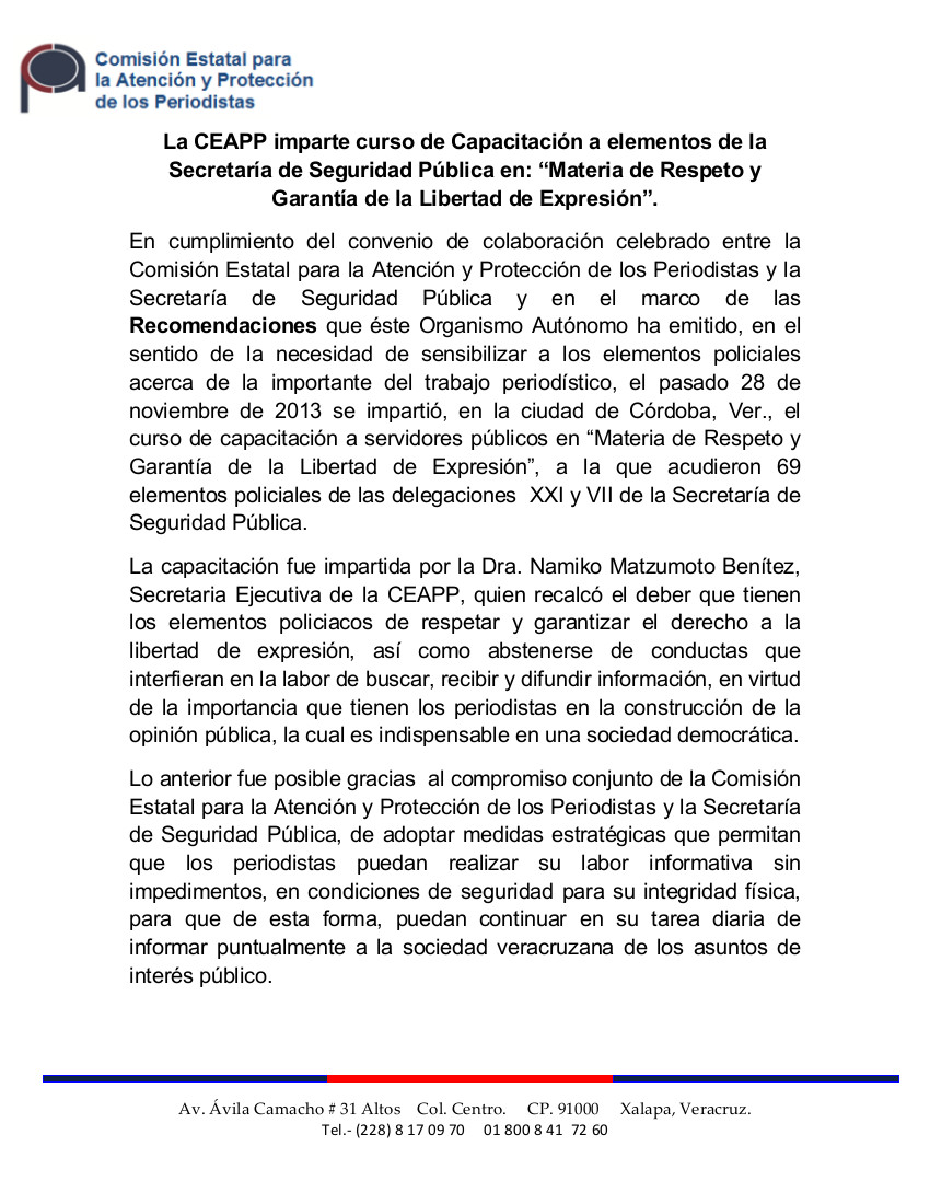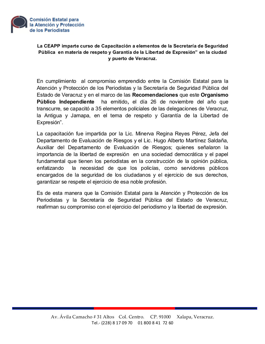 La CEAPP imparte curso de Capacitación a elementos de la Secretaría de Seguridad Pública en materia de respeto y Garantía de la Libertad de Expresión" en la ciudad y puerto de Veracruz.