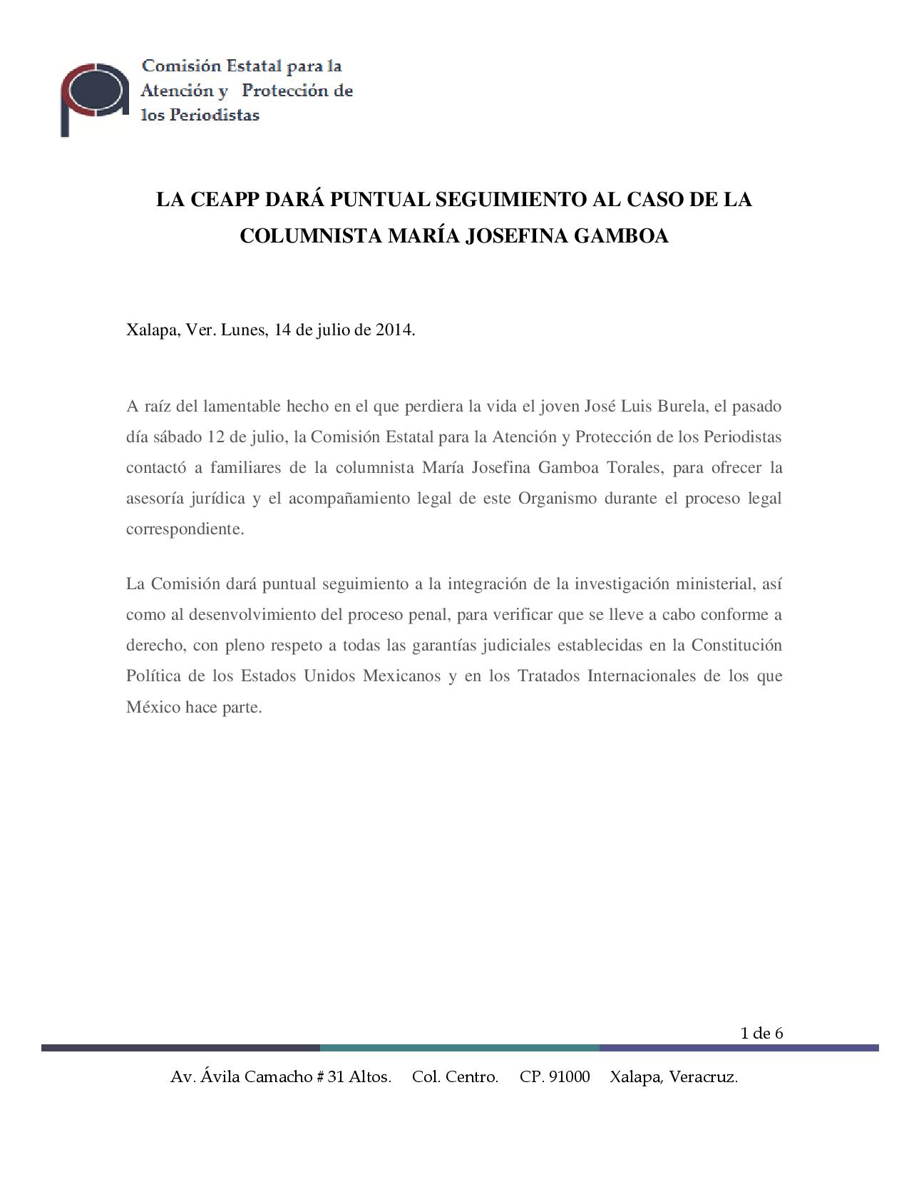 LA CEAPP DARÁ PUNTUAL SEGUIMIENTO AL CASO DE LA COLUMNISTA MARÍA JOSEFINA GAMBOA
