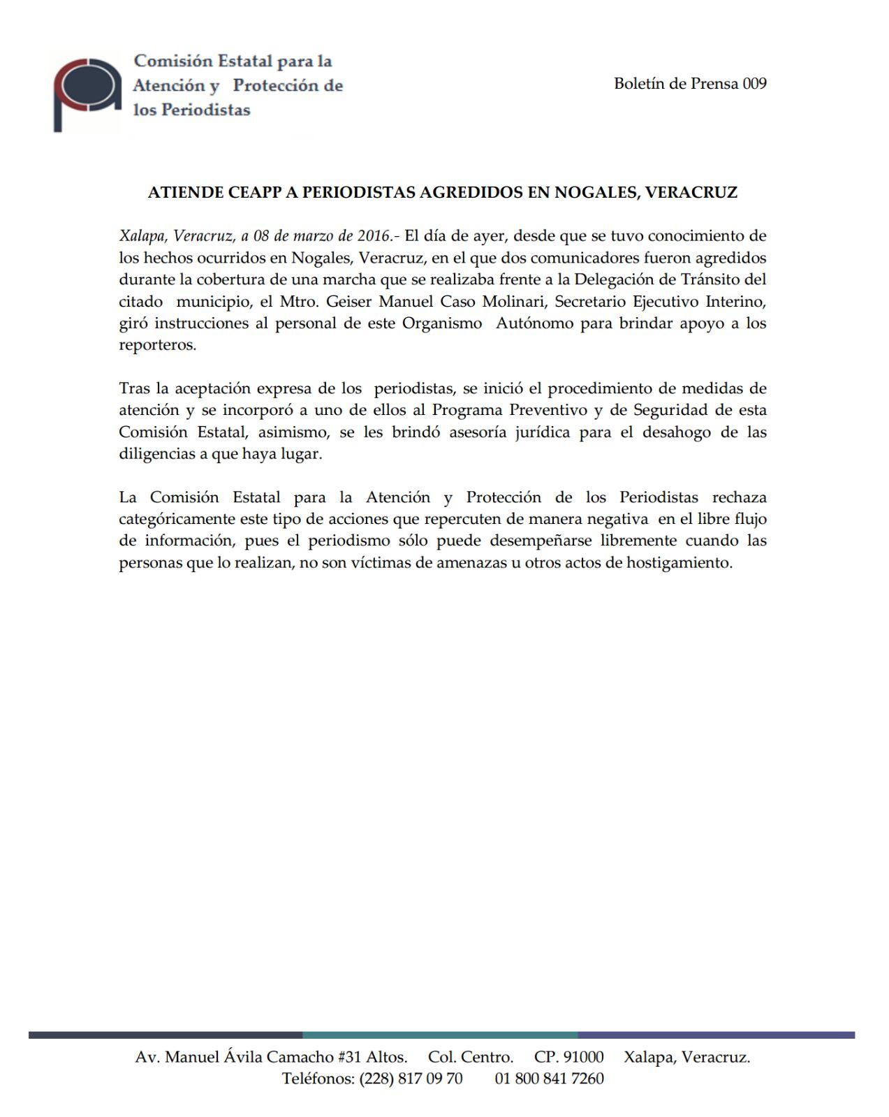 ATIENDE CEAPP A PERIODISTAS AGREDIDOS EN NOGALES, VERACRUZ