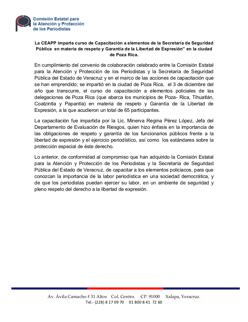 La CEAPP imparte curso de Capacitación a elementos de la Secretaría de Seguridad Pública en materia de respeto y Garantía de la Libertad de Expresión" en la ciudad de Poza Rica.