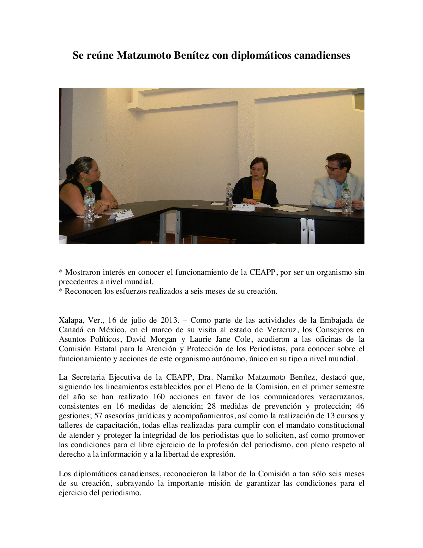Se reúne Matzumoto Benítez con diplomáticos canadienses
