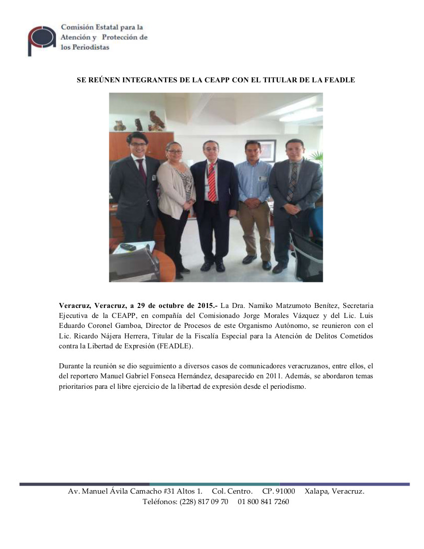 SE REÚNEN INTEGRANTES DE LA CEAPP CON EL TITULAR DE LA FEADLE